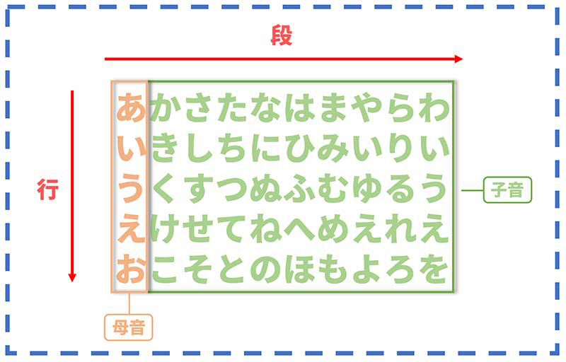 「五十音」就是組成日語的文字,分為平假名和片假名兩種字母系統,各有母音五個字,子音十個字,交叉而成五十音。